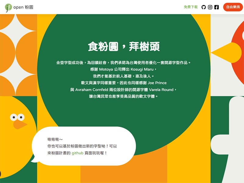 第一步:進入 justfont 為粉圓體製作的著陸頁,上面非常詳細的解說免費字體的來龍去脈,並且也在頁面的尾端註記開源字型的規則。